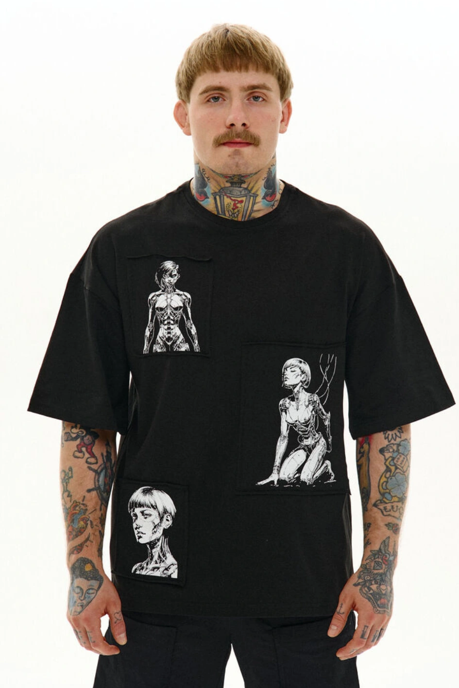 Футболка з трьома принтами на нашивках "Мотоко"