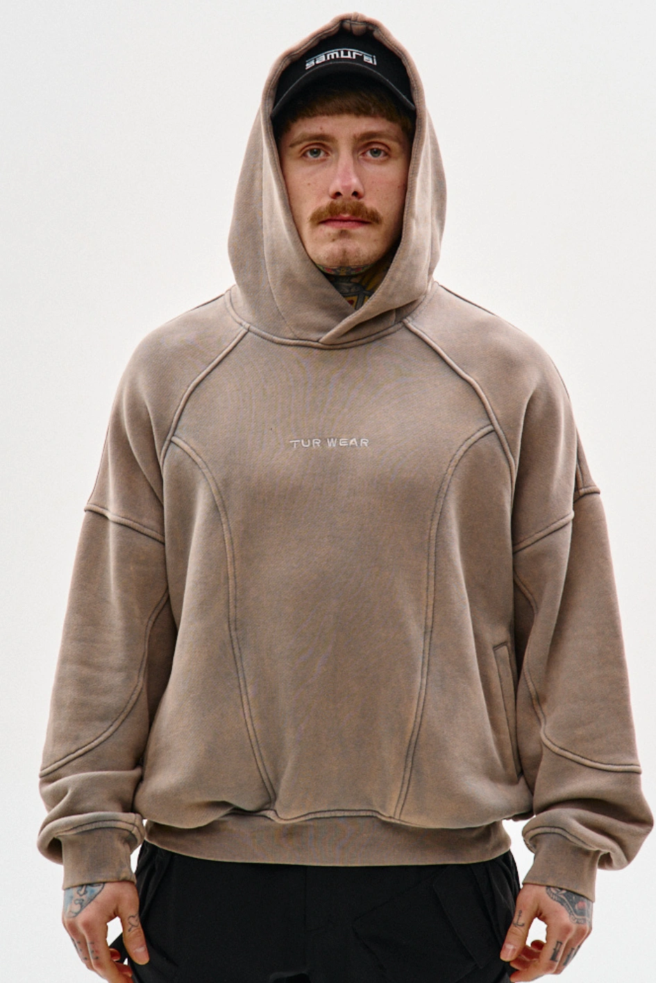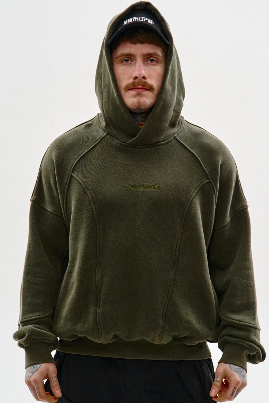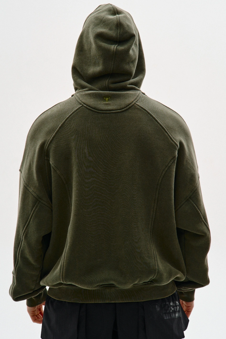 • Худі оверсайз крою з декоративними швами "Рейз", хакі з ефектом варки
