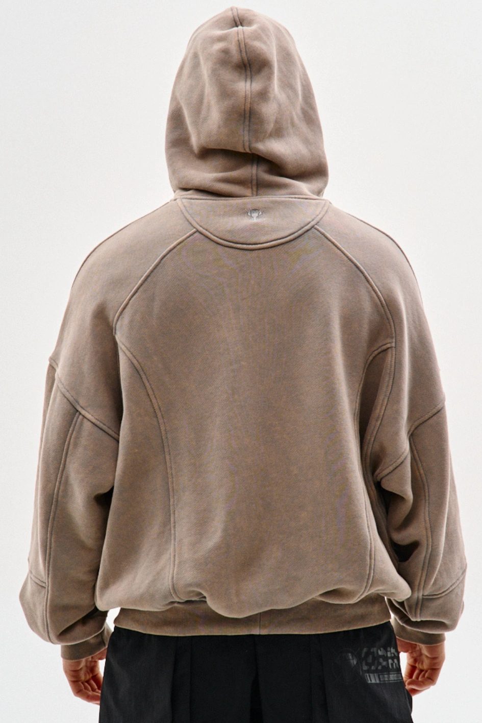 • Худі оверсайз крою з декоративними швами "Рейз", чорний з ефектом варки
