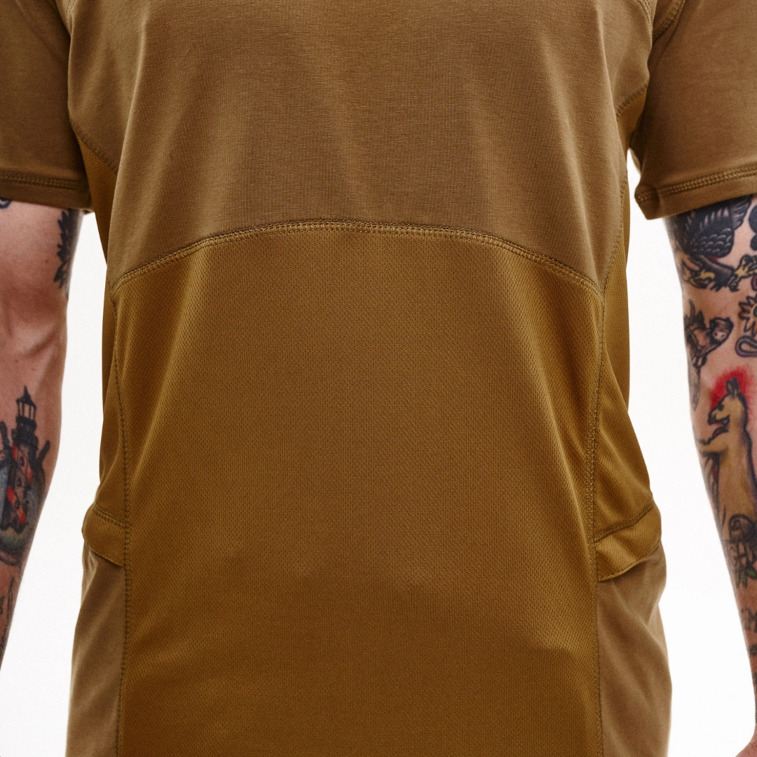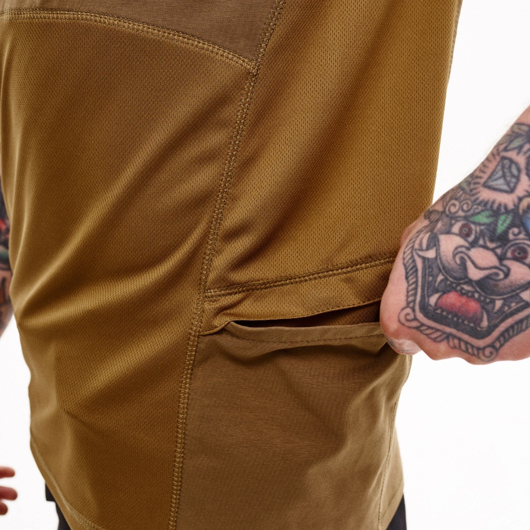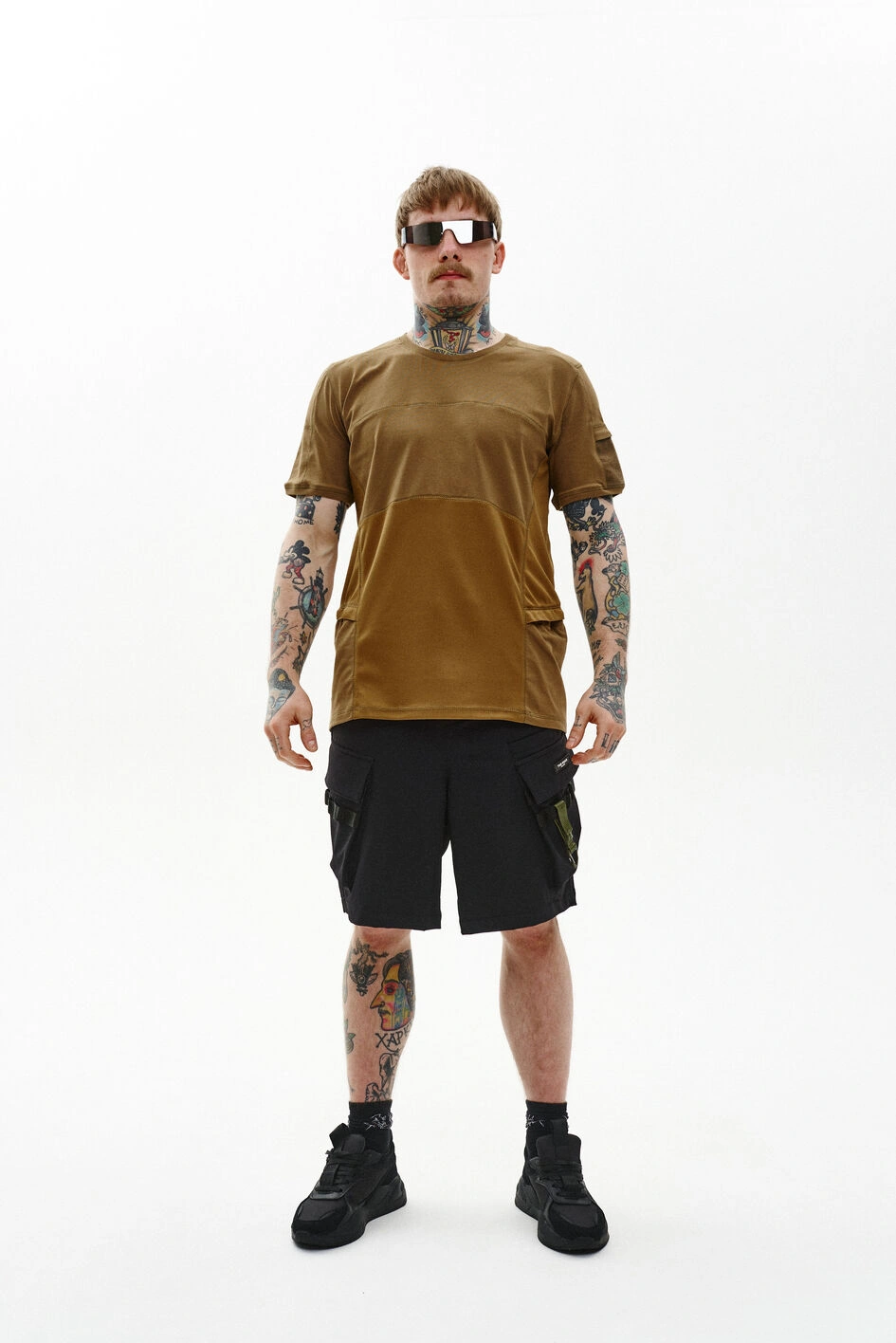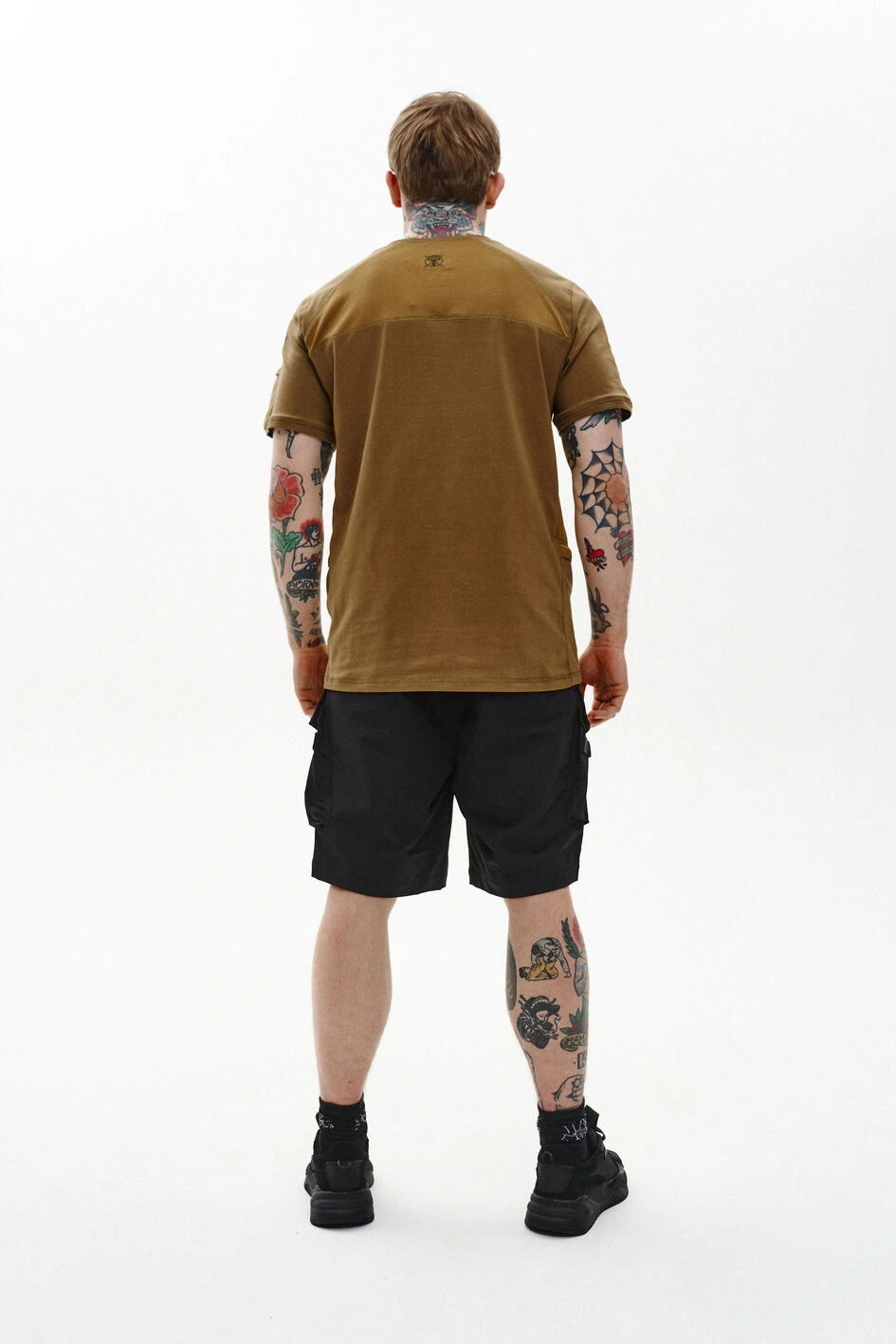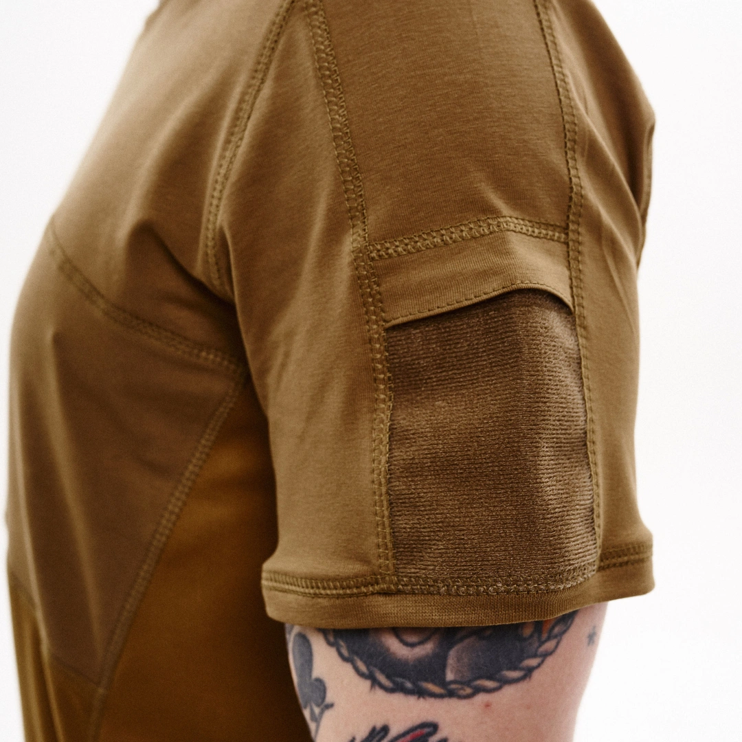 Футболка з натурального котону — ідеальна для спекотної погоди й активного використання. Усі шви оброблені распошивальним швом із зовнішнім малюнком. Оснащена трьома кишенями: одна на рукаві та дві з боків у нижній частині. На рукаві також розміщена велкро-панель для кріплення шевронів — тактична естетика у кожній деталі.