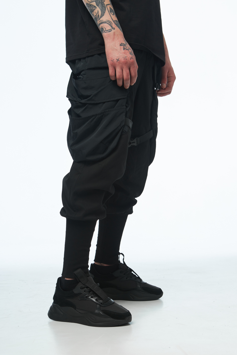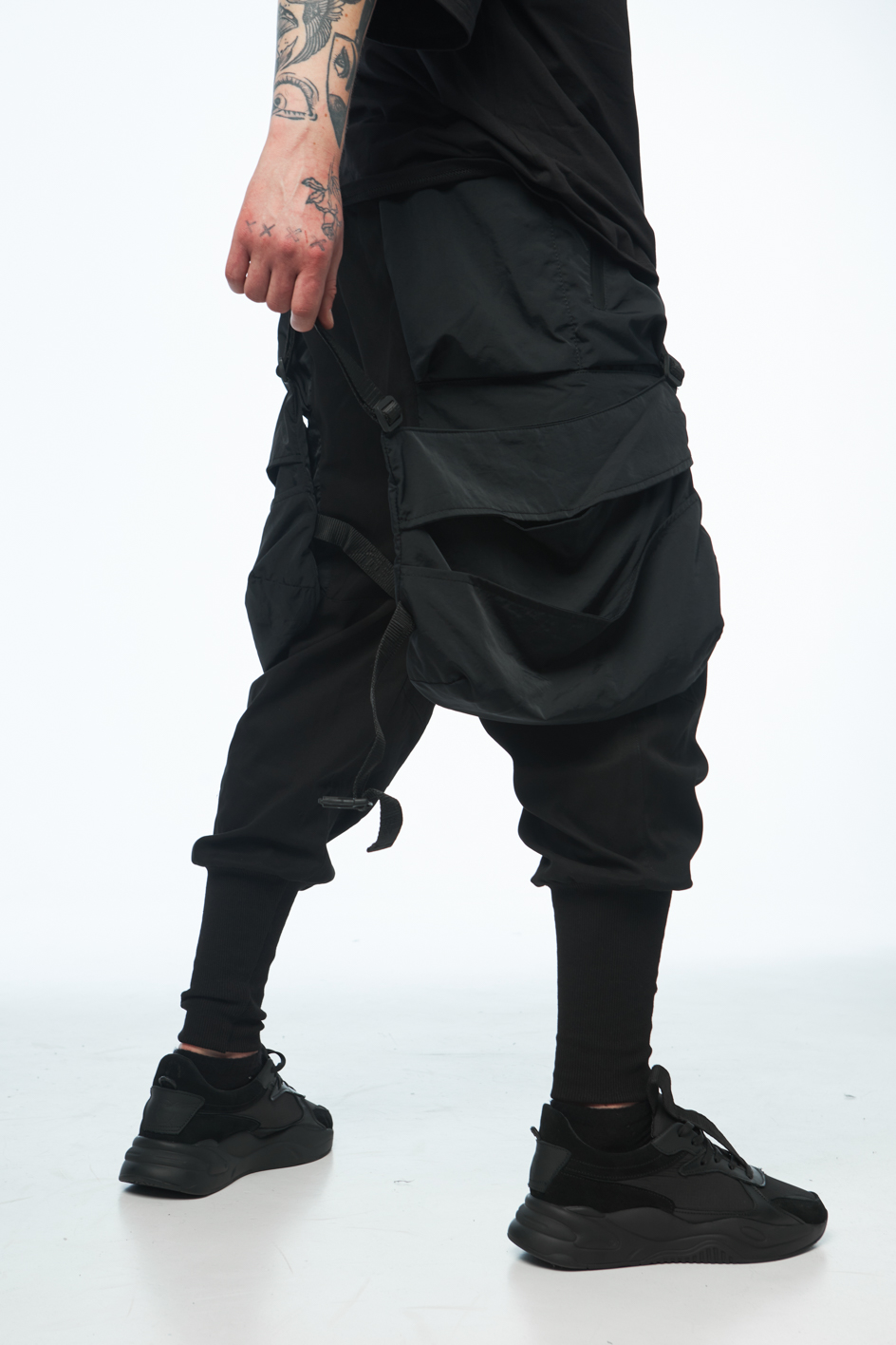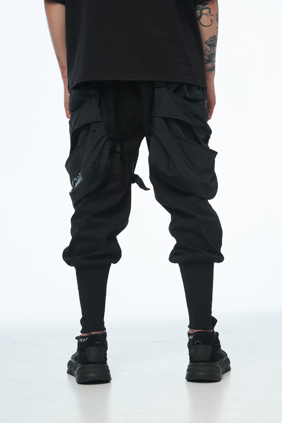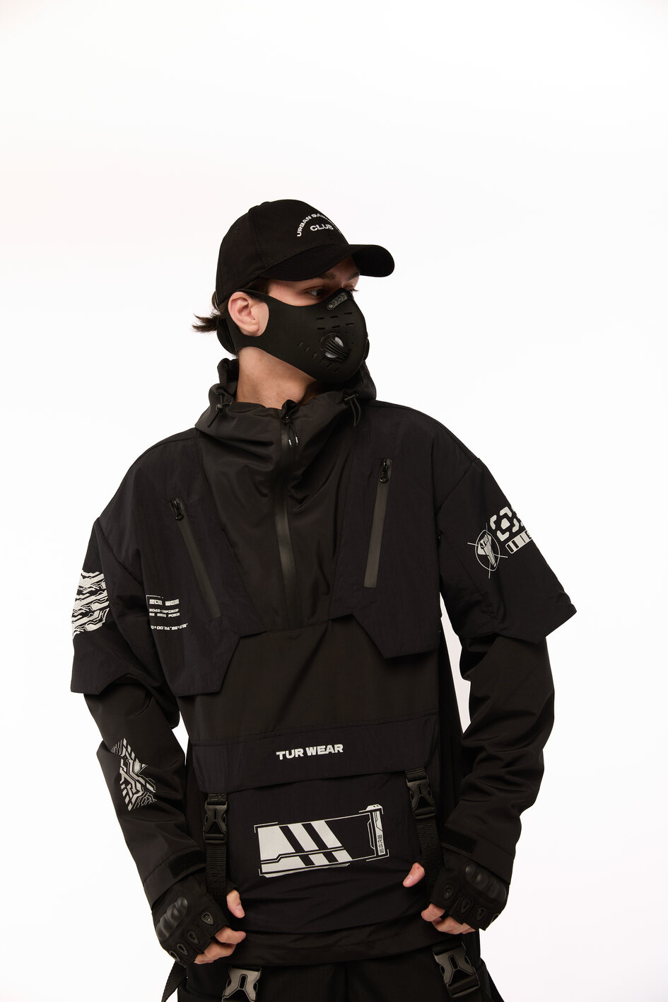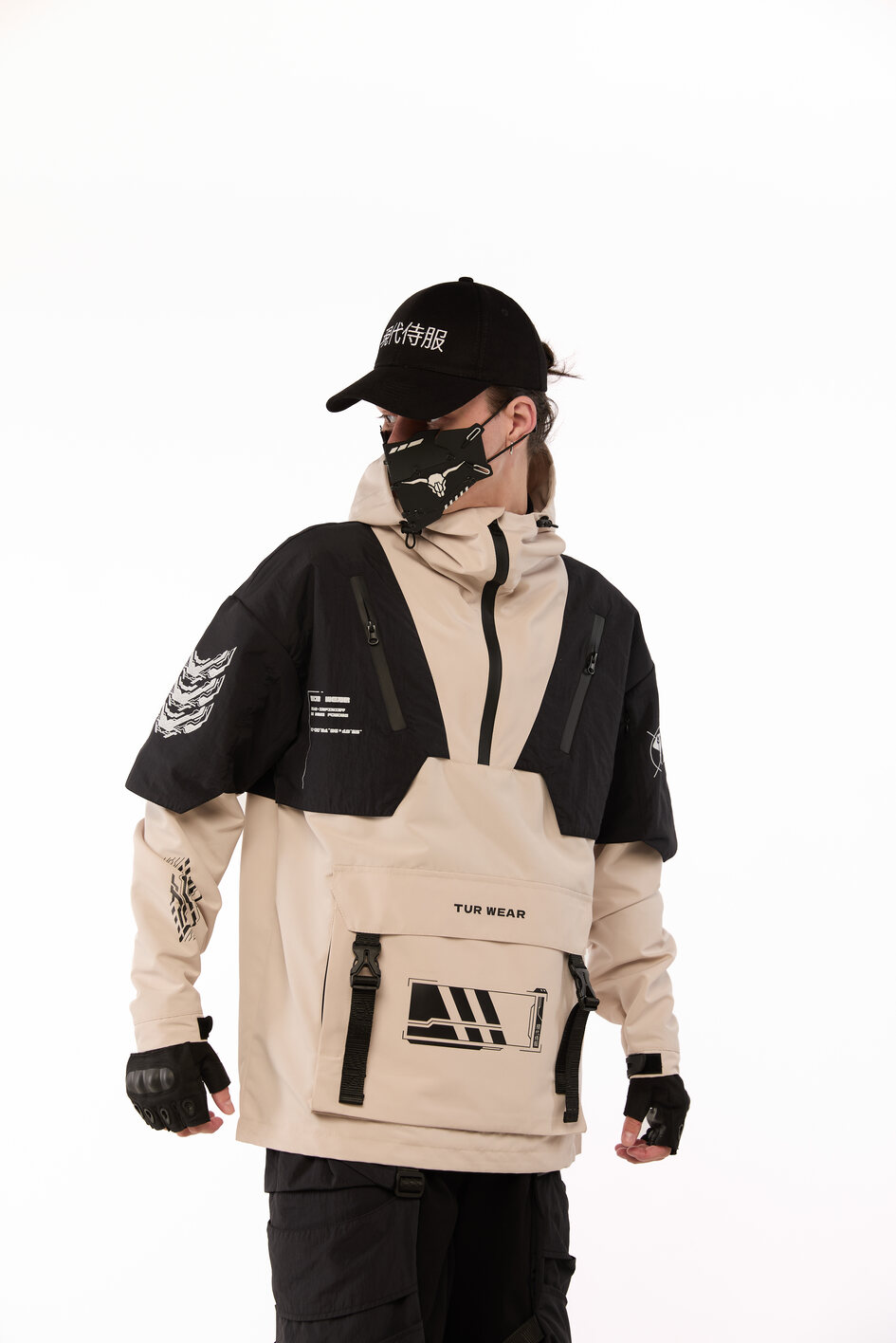 Сет SOUL OF DARK 2 — це бойова естетика для тих, хто звик тримати власну лінію в хаосі міста. Анорак із гострою геометрією принтів, карго штани зі зйомними сумками, кросівки з замшевими вставками і кепка з японськими ієрогліфами — кожен елемент несе не просто функцію, а меседж. Це лук для самурая майбутнього, який знає: стиль — це теж зброя.