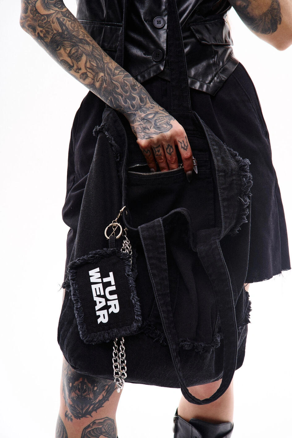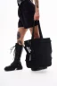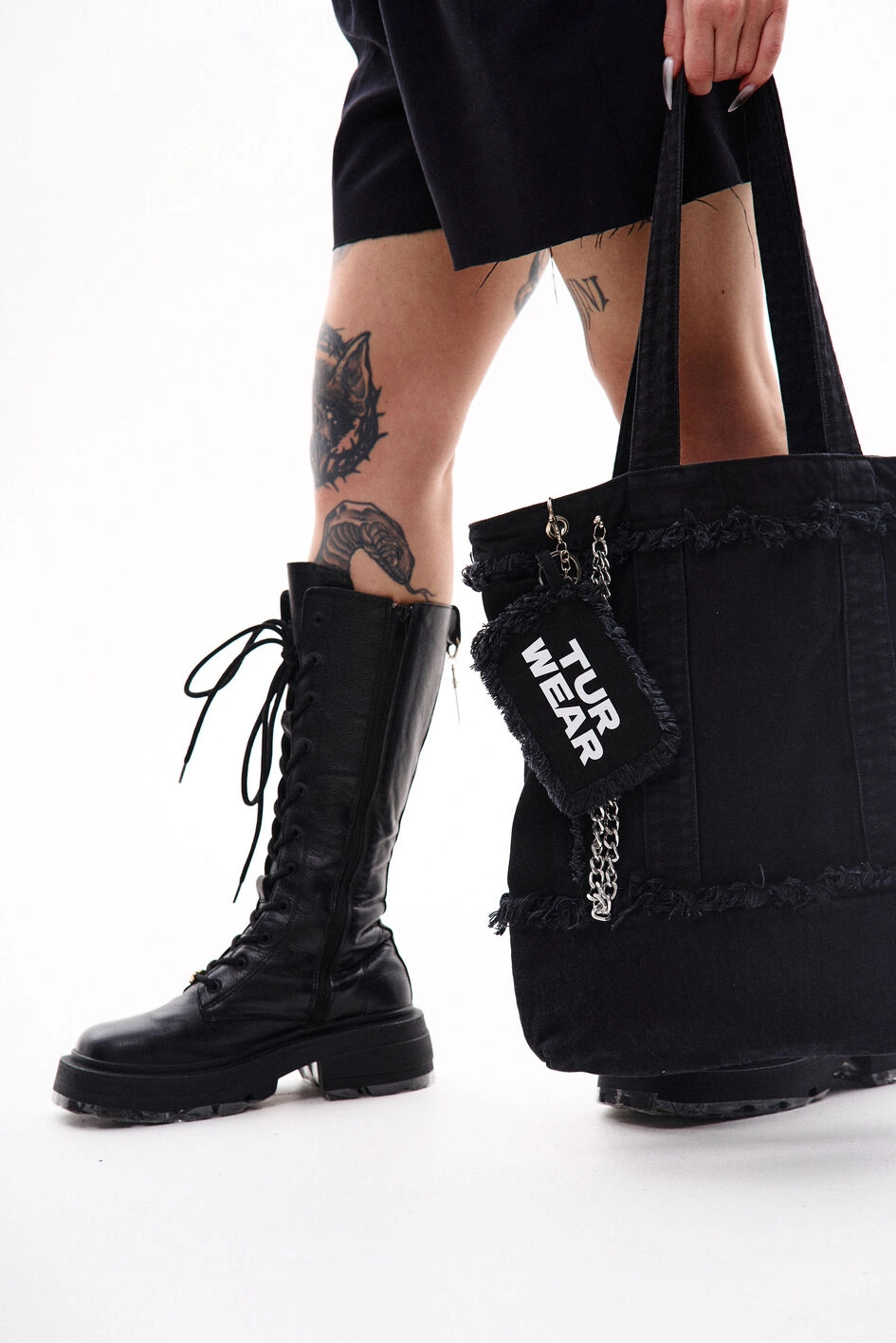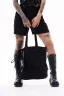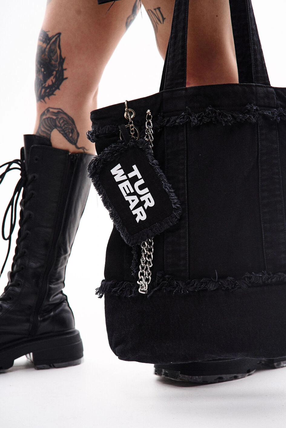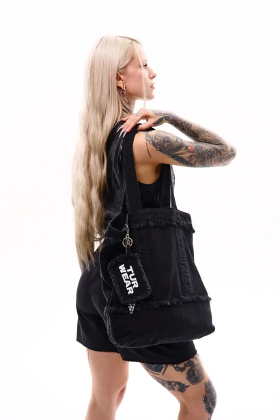 Шопер з джинсової тканини з однією внутрішньою кишенею для дрібних речей. Декорований металевими елементами та брелоком з фірмовим принтом — акцент, що одразу привертає увагу. Підійде для повсякденних образів і стане функціональним доповненням міського стилю.
