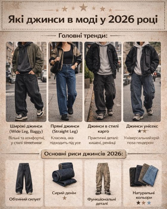 Джинси у 2026 році остаточно перестали бути просто базовою річчю. Вони стали інструментом самовираження, частиною стилю життя і способом показати свою індивідуальність. Сучасна мода більше не диктує жорстких рамок. Навпаки, вона заохочує експерименти, комфорт і свідомий підхід до гардеробу.